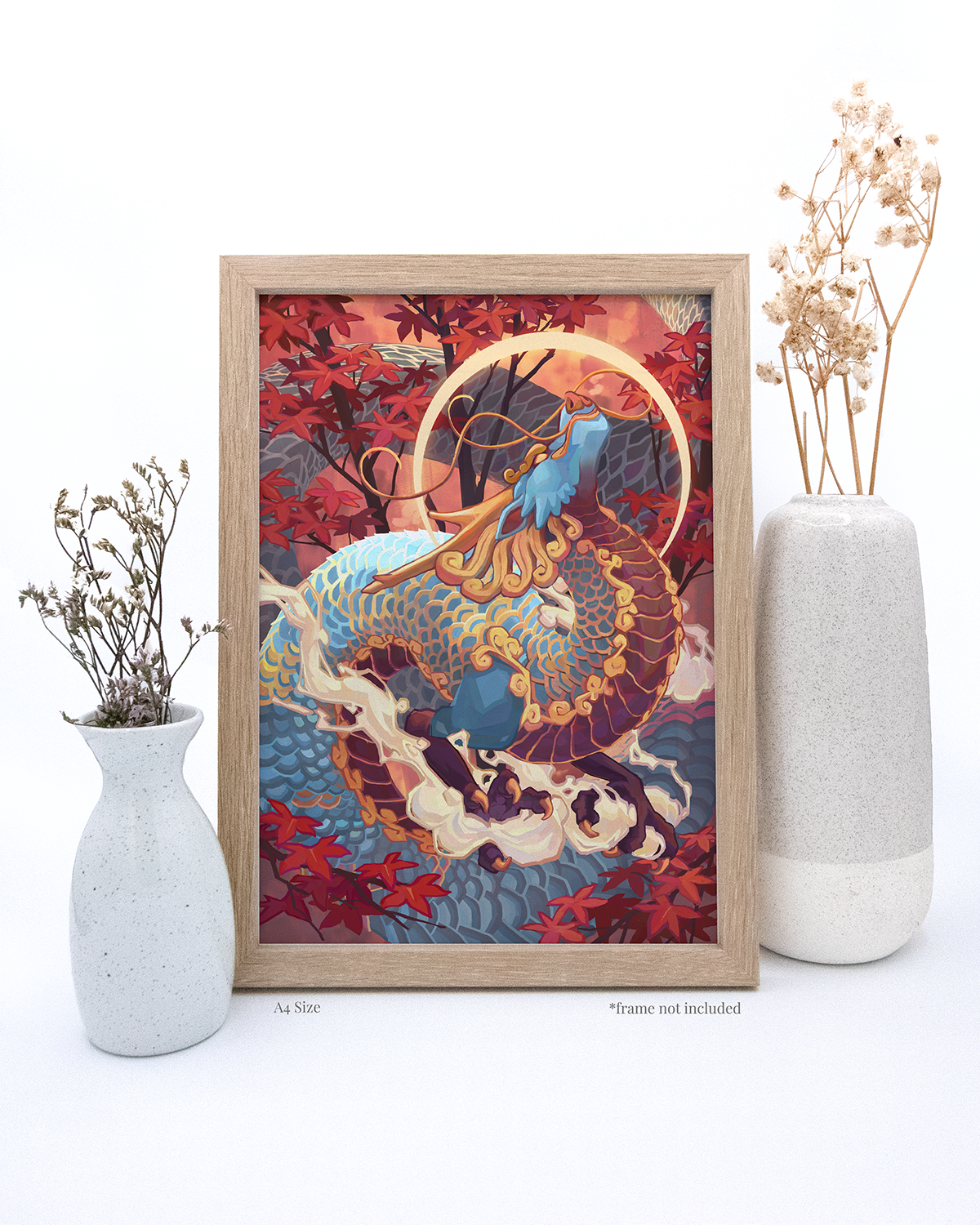 A4: 210 × 297 cm 400gsm matte velvet print + 400 gsm backing board + cellophane sleeve